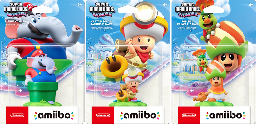 Pour la sortie de Super Mario Bros. Wonder sur Switch 2, Nintendo vient d'annoncer la sortie de 3 nouveaux amiibo : Mario éléphant, Capitaine Toad et Fleur Cancan, Poplin et Prince Florian.