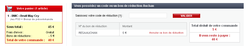 C’est avant de saisir le numéro de CB, j’ai saisi le code « RESAAUCHAN » (1 S et 2 A) dans la case « saisissez votre code de réduction [?] ».