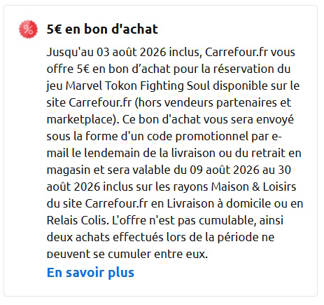 Comme d’habitude chez carrefour, il faut accepter tous les cookies pour voir la mention des 5€ offerts :