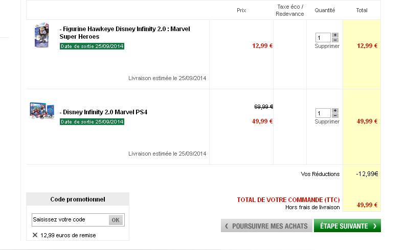 moi je l’avais precommander depuis le mois daout a 59.98€ avec une figurine offerte et la il le propose a 10 € de moins et ils veulent rien comprendre je dois payer 59.98 donc j’ai tout annulé,c’est vraiment des incompétents auchan!