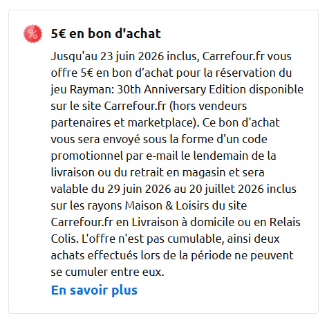 PrécoRayman édition 30e anniversaire (Switch, PS5) [FR] à 24.99€ avec 5€ offerts